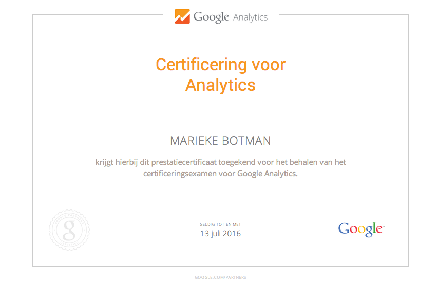 Google Analytics certificaat